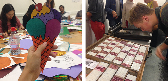 After Alan's talk, and short film that followed, we moved onto the workshop run by Animaux Circus called 'Dinner & Dreams'. Here you could take a template from a variety of different foods and create a dream meal for your ideal dinner date; I opted for an Ice Cream for Boy George. This was a great workshop for expressing your creativity and having a laugh with a group of people, there was a lot of children there who seemed to be really enjoying themselves getting arty.