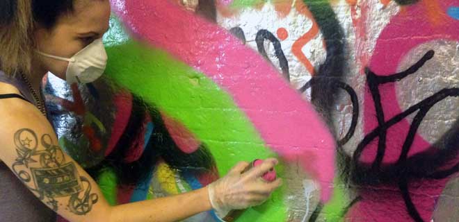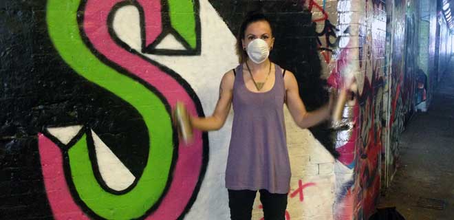 The initial problem was what spot to pick, as I felt slightly bad covering up somebody else's piece of art! I also quickly realised that the amateur in myself had only purchased one size of cap, so the control of line work was rather tricky and thick. This was a great contrast to the controlled brush work I have been doing recently on my signpainting!