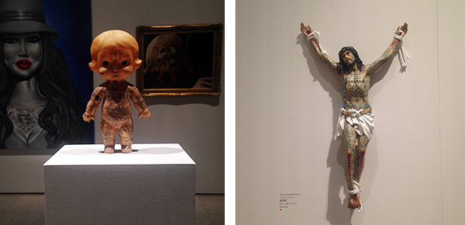 In addition to this, I finally went along to the Time: Tattoo Art Today exhibition at Somerset House on Sunday. The exhibition presents artworks from 70 of the world’s most influential tattoo artists including Ed Hardy, Horiyoshi III, Paul Booth, Rose Hardy, Chris Garver and Miami Ink's Ami James. I was surprised by the work that was on show, expecting it to be marabout technical drawings and the fine art process. The resulting collection ranged from oil paintings, watercolours and traditional Japanese silk painting to paint layering on real skulls, airbrush and bronze sculpture.